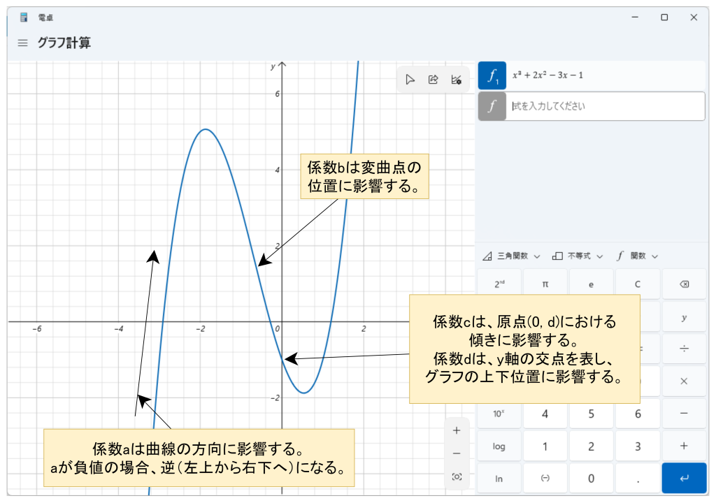 3次関数は次数が3の多項式から構成される関数です。3次関数の基本的な式は以下になります。