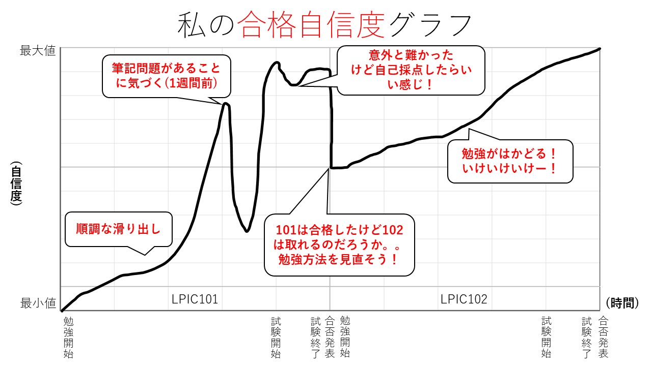 101と102、それぞれの勉強期間と合格への自信度をグラフにしていただきました。101では少し苦戦された様子でしたが、102では自信を失うことなく、順調に学習を進められたそうです。なぜそんな違いが生まれたのか、とても気になりますね。
