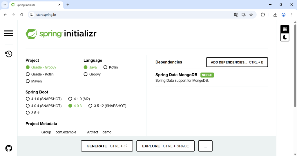 implementation 'org.springframework.boot:spring-boot-starter-data-mongodb'